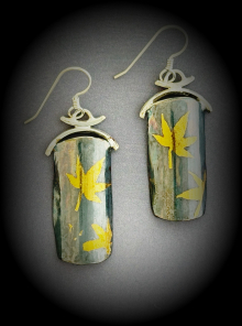 Fused 24K Gold and Silver Dangle Earrings, Maple Leaf Design